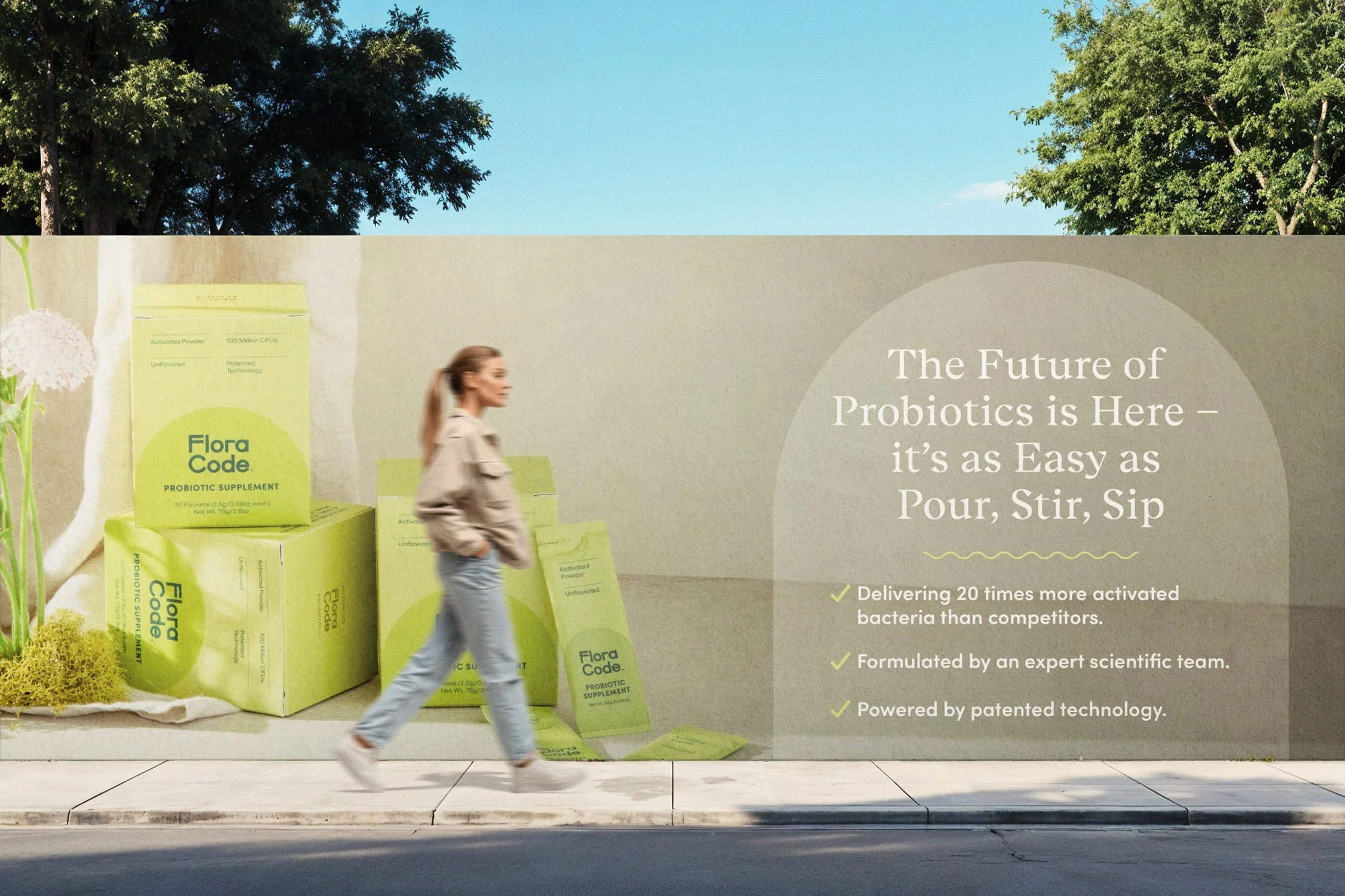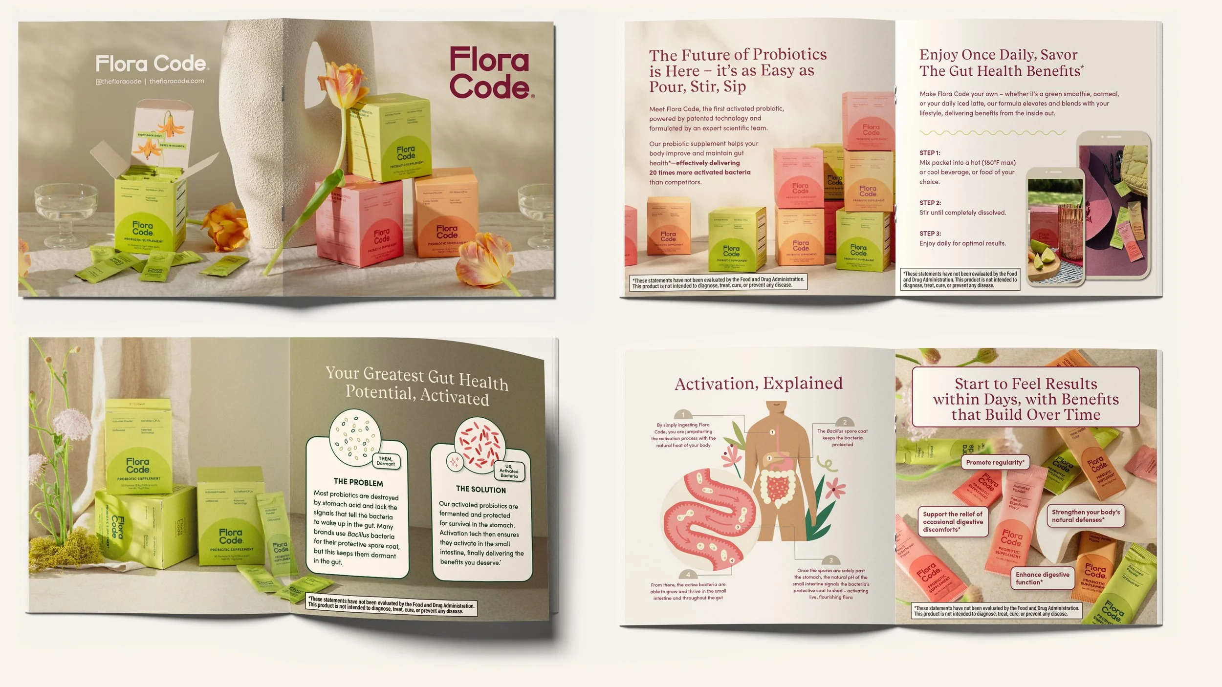 Flora Code's proprietary formulation sets it apart in a saturated probiotic market. Our goal was to ensure that their brand reflected the innovation and integrity that is behind their products. We partnered with Flora Code to strategically evolve their brand and position them as a leader in the competitive probiotic space.